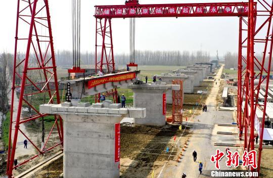 图为,武汉至仙桃城际铁路架梁现场 彭特 摄