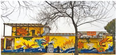 犁桥村民居外墙上的彩绘。资料图片