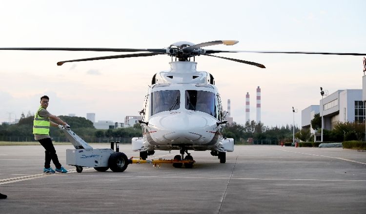 作为首届中国国际进口博览会上的展品,意大利莱奥纳多直升机公司AW189直升机入驻智能及高端装备展区。(新华社记者方喆摄)