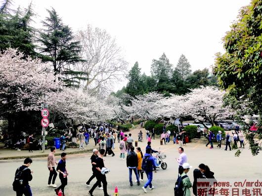 上下课的路上,樱花大道的游人如织;学生餐厅里,总是会有社会公众蹭饭卡吃饭;游客进教学地点参观,也会干扰师生。最令人反感的是不文明赏花行为,被同学们称为“樱花劫”