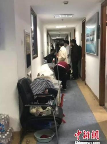 22日凌晨,响水县人民医院依旧灯火通明。医院的大门口不断有伤者运来、抬出。中新社记者在医院普外科、烧伤科看到大量伤者,伤者及家属将楼道排得满满当当。