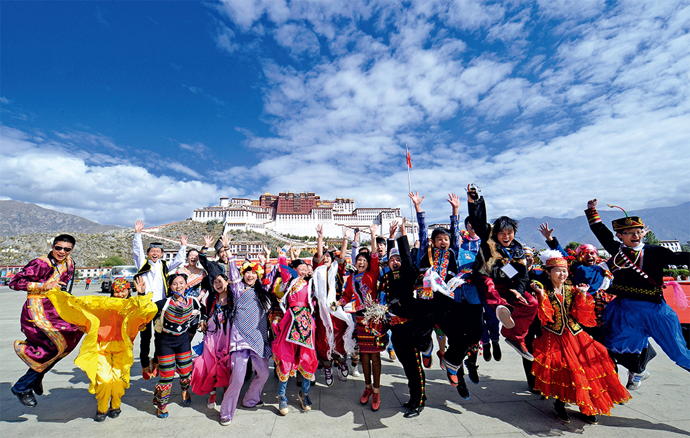 2012年9月27日,各族青年在布达拉宫广场欢呼合影 觉果摄