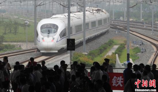资料图:开往杭州的“和谐号”列车从南京南站出发。宁杭高速铁路正式投入运营后,南京至杭州的单程旅行时间缩短至一小时左右。中新社发 泱波 摄