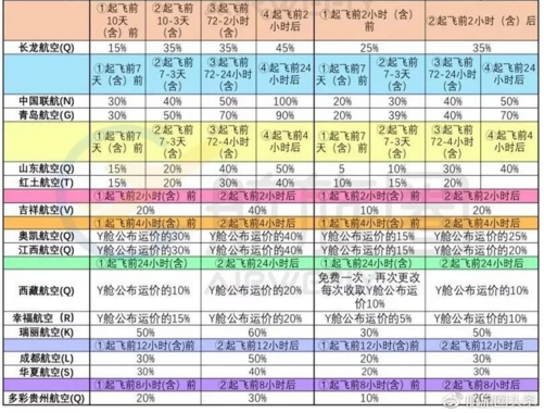 具体每家航司收取多少退改签手续费,可以详见下方表格: