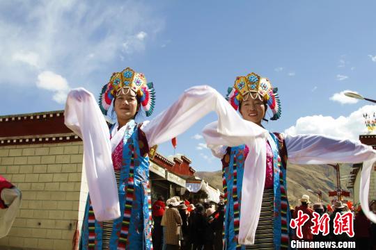 图为快闪中的藏戏舞蹈表演。 赵朗 摄
