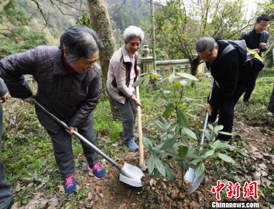 周恩来后人与黄绍竑后人在留椿屋前种下友谊之树。 王刚 摄