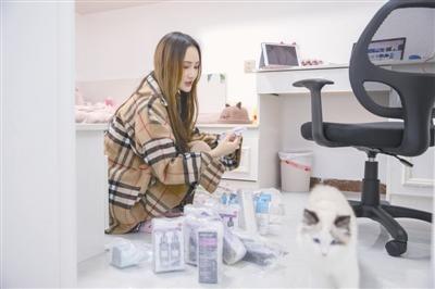 3月27日晚,曾琪回到家中将前几天在国外购买的化妆品打包寄给自己的粉丝,海外代购是她的另一项副业。