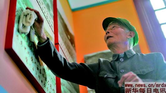 3月27日,程樟柱在纪念馆内擦拭介绍烈士事迹的展板。