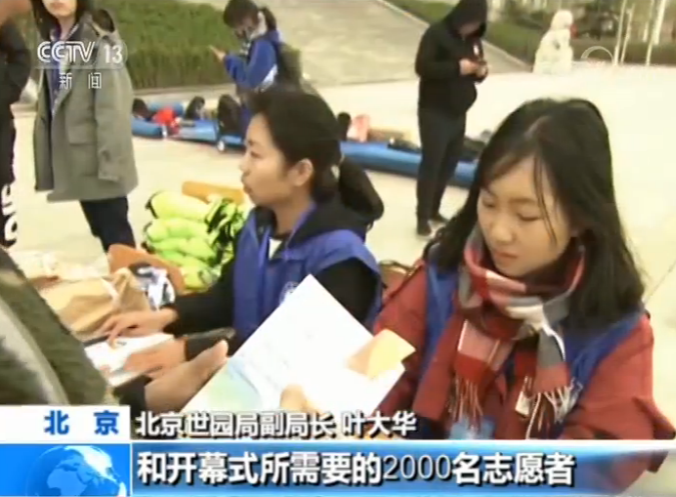 北京世园局副局长 叶大华 :目前招募工作进展有序,第一批在试运营阶段和开幕式所需要的2000名志愿者已经招募到位,这些志愿者都拥有很多大型活动的经验,特别有些是掌握了几门外语,像英语、法语、德语,体现志愿者的这种国际化的水平。