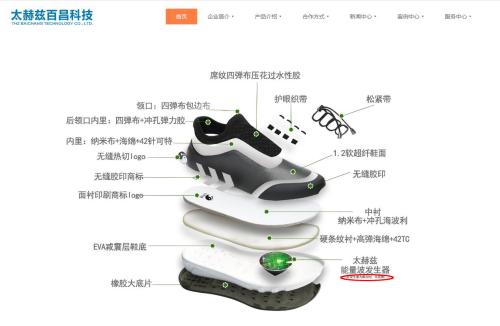 对于这款“养生鞋”,许昌太赫兹百昌科技有限公司官网将其称为“一个正在创造奇迹的产品”。