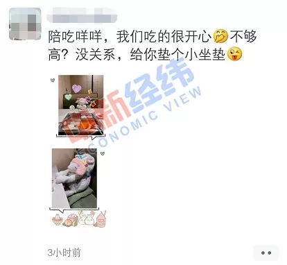白领小萌(化名)在最近就感受到了一次“治愈”服务。在一次独自出门用餐时,店家贴心地提供了“陪吃”服务,即将一个毛绒玩具摆放在她面前,并为其添加碗筷,让用餐者感受到被陪伴的氛围。