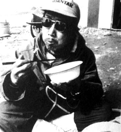 长城站建设时环境十分艰难,郭琨席地而坐就餐