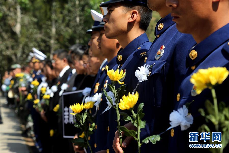 4月6日,在四川木里森林火灾扑救中英勇牺牲的烈士张浩的骨灰安葬仪式,在四川省凉山彝族自治州西昌市烈士陵园举行。当地消防队员、武警官兵和社会各界群众送别英雄。 新华社发(李结义 摄)