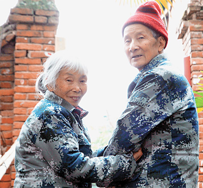 马旭(左)和老伴在家门口。徐 晨摄(影像中国)