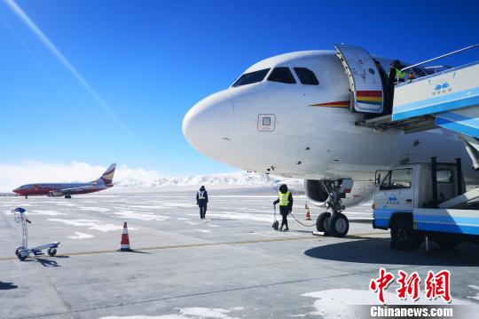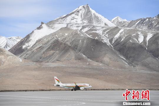 中新网阿里4月8日电 (江飞波 何蓬磊)经过近两个小时的飞行,8日上午,中新网记者搭乘的西藏航空TV6008次航班平稳降落于海拔4274米的西藏阿里昆莎机场。该机场为高高原机场,海拔高度排名中国民航机场第四。