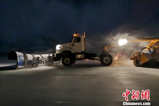 图为阿里航站工作人员在阿里昆莎机场内除雪保障航班。 民航西藏区局阿里航站供图 摄