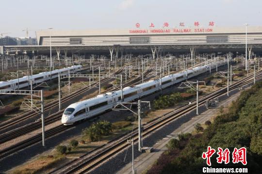 上海虹桥站高铁列车到发场景。(中国铁路上海局集团有限公司供图 )
