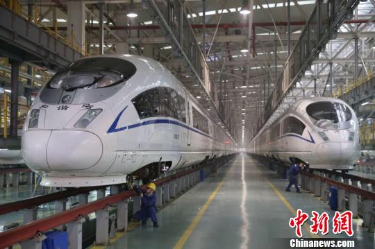 南京动车所工作人员在检修动车组。(中国铁路上海局集团有限公司供图 )