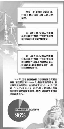 数据显示,2018年,全国各级检察院对涉嫌犯罪但无需逮捕的决定不批捕116452人,对犯罪情节轻微、依法可不判处刑罚的决定不起诉102572人,同比分别上升4.5%和25.5%。在办理认罪认罚从宽案件中充分发挥主导作用,检察机关建议适用这一程序的占98.3%,量刑建议采纳率96%。