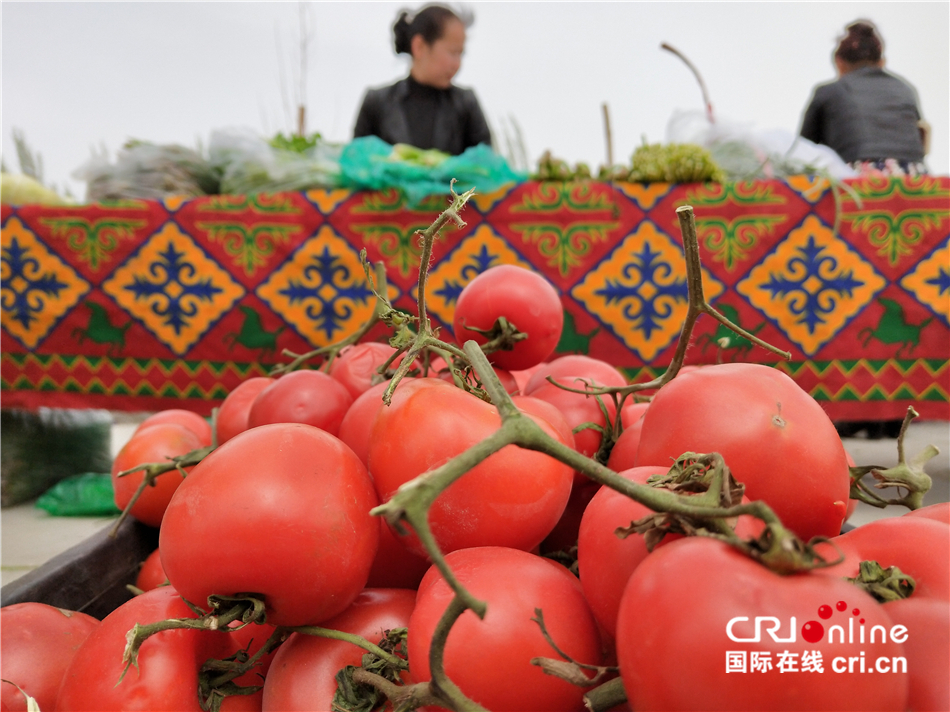 国际在线消息(记者 张宪)每周五是新疆阿克苏地区库车县齐满镇甬库团结村的巴扎开市的日子。从早上开始,本村和附近村庄的农民就陆续到这里摆摊,兜售自家生产的瓜果、蛋禽、牛羊肉、手工制品等。便民巴扎中,食品摊位特别受欢迎,各类新疆风味的小吃,比如馕、烤肉、酸奶、面皮子、米肠、凉皮凉粉等,香味四溢,让人食指大开。