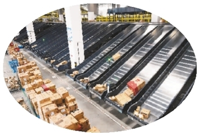在浙江嘉兴菜鸟“未来园区”,商品按照包裹地址的不同进行自动分拨。