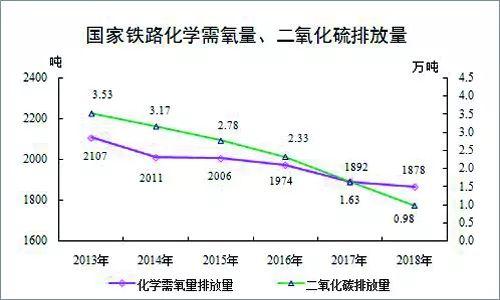 主要污染物排放量。国家铁路化学需氧量排放量1878吨,比上年减排14吨,降低0.7%。二氧化硫排放量9836吨,比上年减排6468吨,降低39.7%。