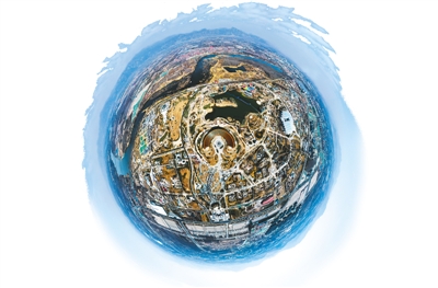 无人机拍摄的北京世园会园区效果图。