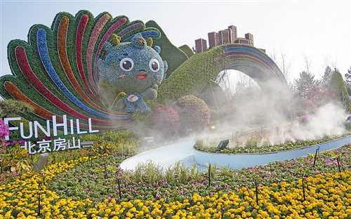 4月16日,工作人员在北京世园会园区布置花坛景观。目前,园艺花卉布置正在紧锣密鼓进行,初步完成整体花卉布置。 本报记者 赵 晶摄
