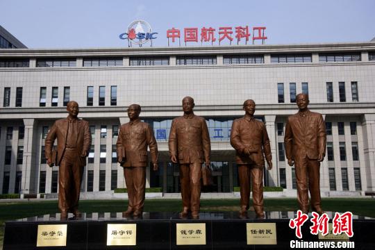 中新网北京4月19日电 (记者 孙自法)在今年“424”的第四个“中国航天日”前夕,中国“航天之父”钱学森与同时期被誉为“航天四老”的任新民、屠守锷、黄纬禄、梁守槃等老一辈航天专家一起阔步向前的全身铜像雕塑群,19日在中国航天科工集团有限公司第二研究院(中国航天科工二院)大楼前落成亮相,这也是中国首座纪念钱老等五位航天元老的铜像雕塑群,旨在缅怀中国航天艰苦卓绝、拚搏奋斗的发展历史,推动青年一代传承航天精神。