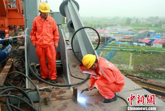 22日,商合杭铁路裕溪河特大桥顺利合龙。(钟欣)