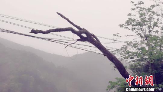龙卷风将树木连根拔起,倒伏压到供电线。三明供电部门供图