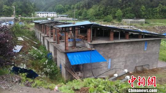 将乐简易厂房屋顶盖板被龙卷风刮飞。三明供电部门供图