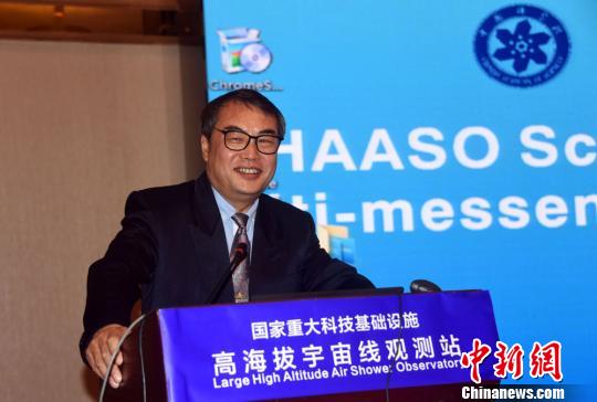 中科院高能所粒子天体物理中心副主任、“拉索”首席科学家兼工程经理曹臻宣布“拉索”启动科学观测。 孙自法 摄