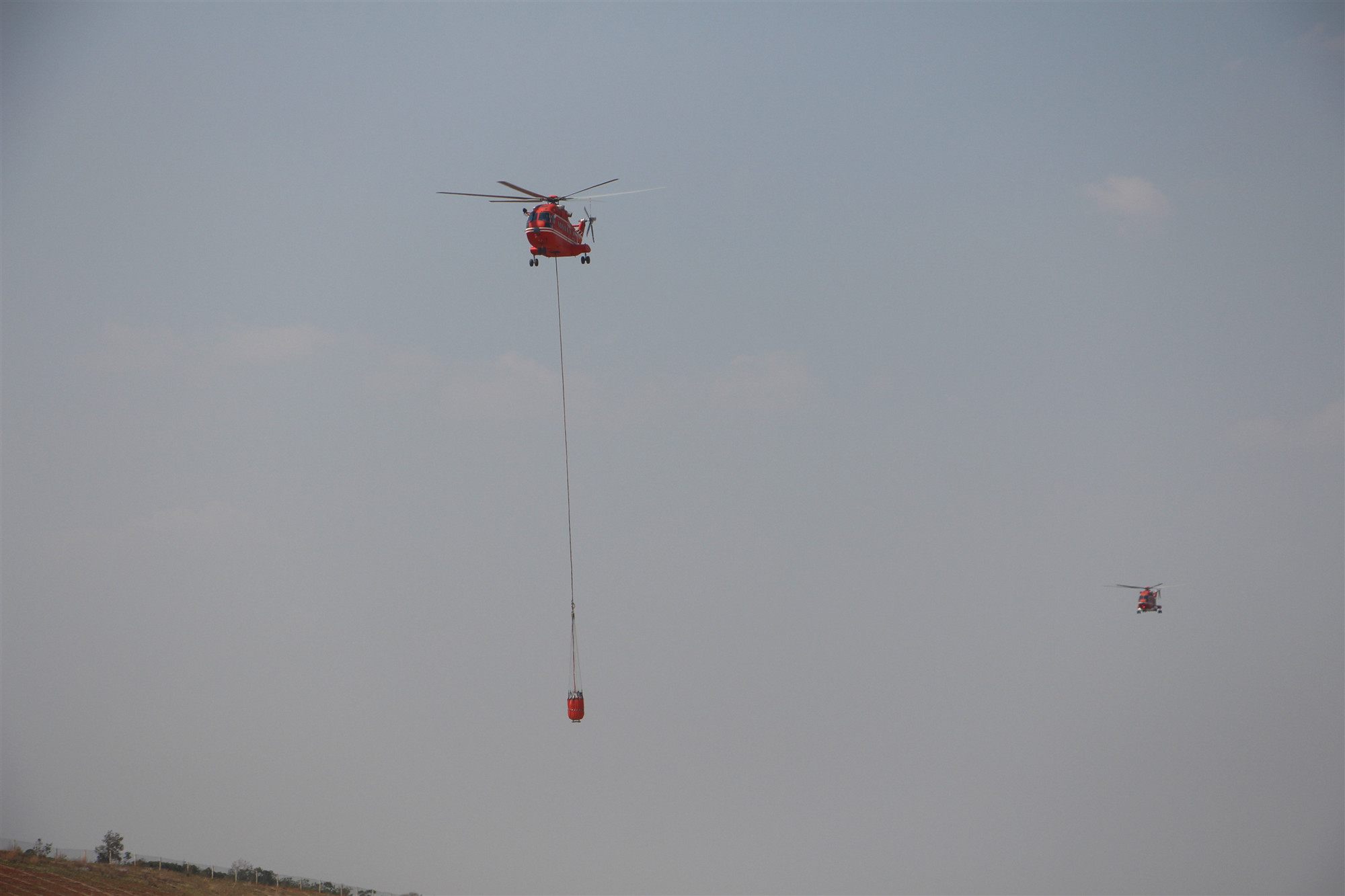 20分钟后,两架直—8A森林灭火直升机在轰鸣声中紧急飞赴火场,采取跟进洒水压制火头的战法实施灭火。23日,两架直升机再赴火场投入战斗。