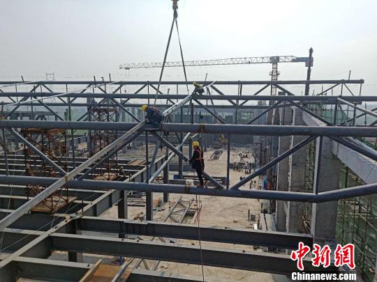 郑阜铁路安徽段新建界首南站站房主体钢结构吊装完成。 郭志衷 摄