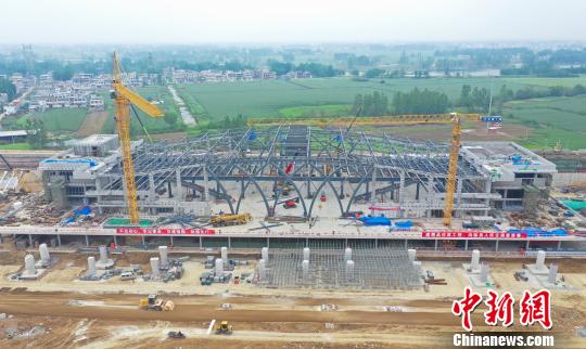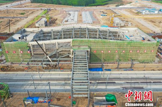 郑阜铁路安徽段新建临泉站主体钢结构吊装完成,站房雏形初现。 郭志衷 摄