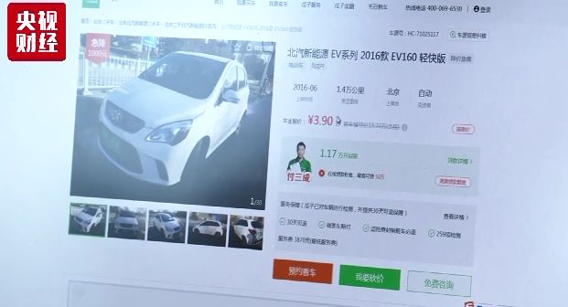 记者 汤天奇:在这个网站上可以看到一辆2016年产的新能源车,报价是3.9万元,而当时新车售价是19.3万元,2年多时间只跑了1.4万公里,但价格却已经缩水了80%。