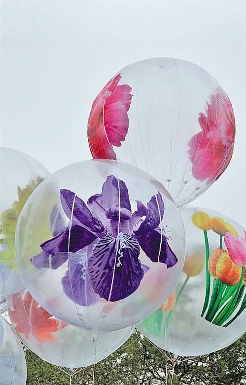 图② 北京世园会开园仪式升起的花卉气球引人注目。 本报记者 李盛丹歌摄