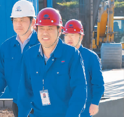 刘啸(前)在京礼高速兴延段施工现场。