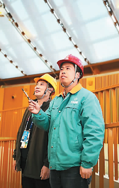 罗党龙(右一)在中国馆施工现场。