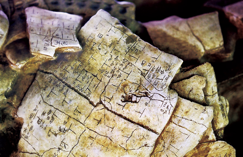 文字的出现,是人类进入文明时代的重要标志。甲骨文是一种刻写在龟甲与兽骨上的中国古老文字,又称“契文”、“甲骨卜辞”或“龟甲兽骨文”,是目前中国已发现的最早的成熟文字。殷墟甲骨文距今3000多年,3000多年来汉字结构没有变,这是中华文明传承的重要标志,也是人类共同的精神财富。图为从殷墟遗址甲骨窖穴内发掘出土的刻有文字的龟甲。新华社记者 王颂/摄