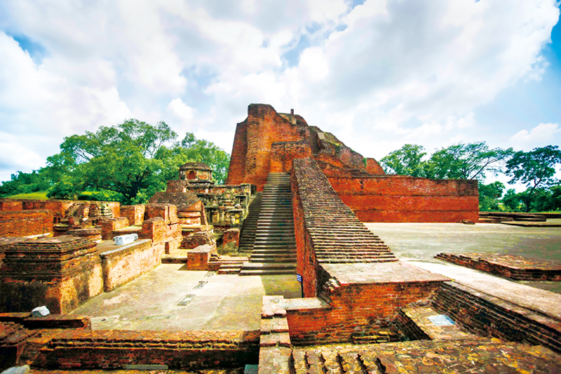 玄奘,唐代著名高僧,中外文化交流杰出使者。他历经艰辛到印度取经,回国后主要从事佛经翻译,译经数量占到唐代译经总卷数的一半以上,所著的《大唐西域记》一书,为研究中古时期中亚、南亚诸国的历史、地理、宗教、文化等提供了重要资料。上图为山西省稷山县青龙寺“玄奘取经图”壁画(局部)(新华社记者马毅敏/摄)。下图为根据《大唐西域记》确认的印度那烂陀寺遗址(新华社记者 郑焕松/摄)。