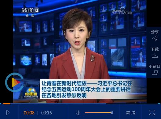 央视网消息(新闻联播):让青春在新时代改革开放的广阔天地中绽放,习近平总书记在纪念五四运动100周年大会上的重要讲话,鼓舞了广大青年积极拥抱新时代、奋斗新时代的坚定信心。大家表示,要勇做走在时代前列的奋进者、开拓者、奉献者,用青春之我创造青春之中国、青春之民族。