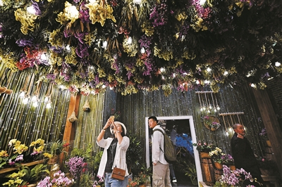 从北京世园会4号门进入,即可体验“东线”游览线路,涵盖生活体验馆、世界园艺展示区、国际馆等主要场馆和景区。昨天下午,北青报记者来到位于北京世园会东北部区域的生活体验馆。刚一进门,眼前就浮现出一条“之”字形花田步道,参观者可以自一楼沿坡道徐徐漫步至二楼,欣赏沿途不同主题的植物。步道两侧栽种着水仙、蝴蝶兰、菊花等植物,还散落着不少用生活用品装点的园艺小品,如小鞋子、小草帽、小木箱等。“我们通过这样的布景方式,既体现绿色环保的生活理念,也是力求将园艺融入生活,体现‘爱园艺、爱生活’的美好主题。”生活体验馆馆长助理樊川介绍说。