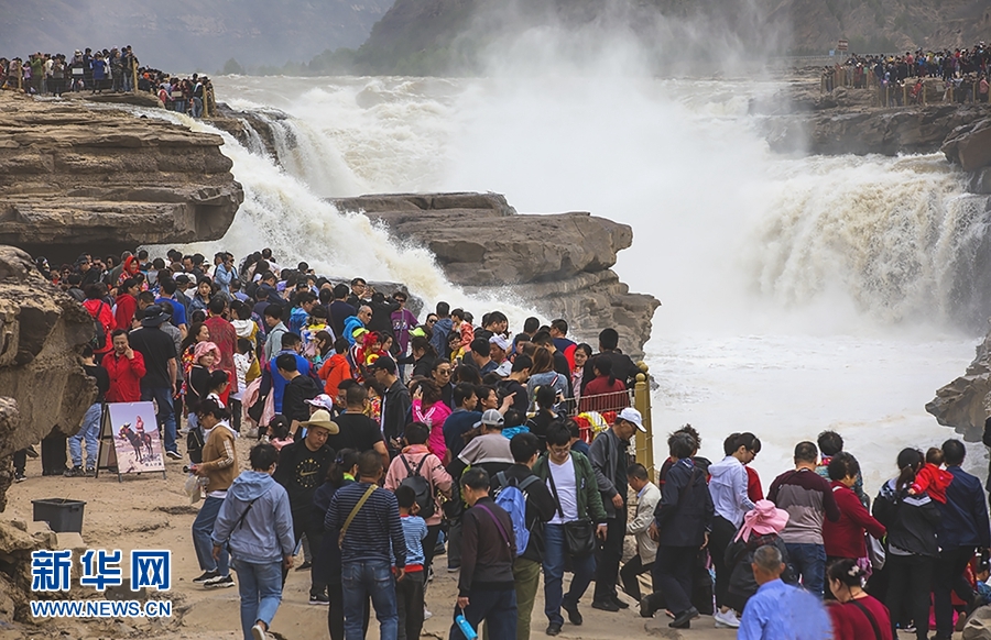 5月3日,游人在位于陕西宜川县的黄河壶口瀑布景区游览。 新华社发(兰华 摄)