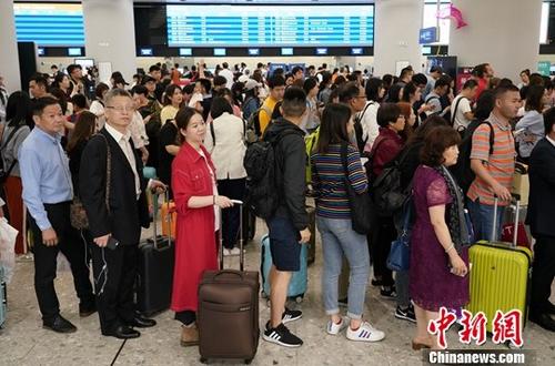图为5月4日众多内地游客在香港西九龙站搭乘高铁返回内地。中新社记者 张炜 摄