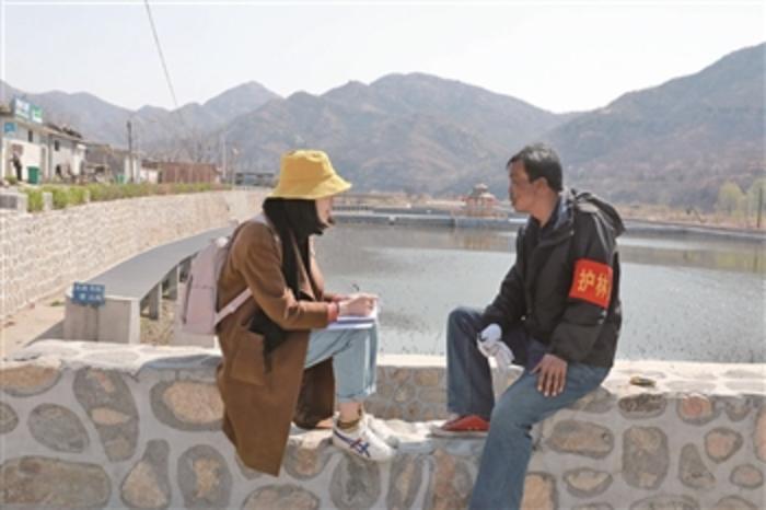 工人日报-中工网记者吴丽蓉(左)在河北省平山县南文都村采访当地村民。
