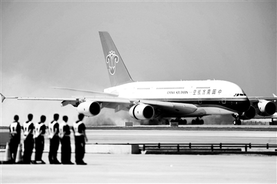 南航:“空中巨无霸”A380客机 作为首个试飞的航司,南航派出了有“空中巨无霸”之称的空客A380客机,它是世界上最大的民航客机,长度73米,翼展79米。A380的试飞可以全方位地检验大兴国际机场是否达到4F级机场的保障要求。