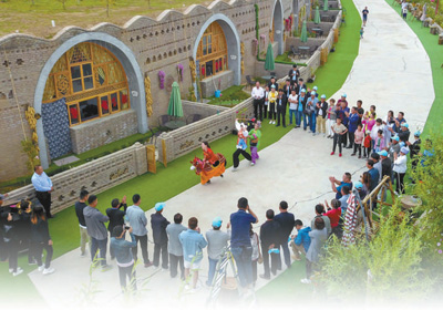 西吉县吉强镇龙王坝村脆弱的生态环境逐步修复。图为游客在观看社火表演。