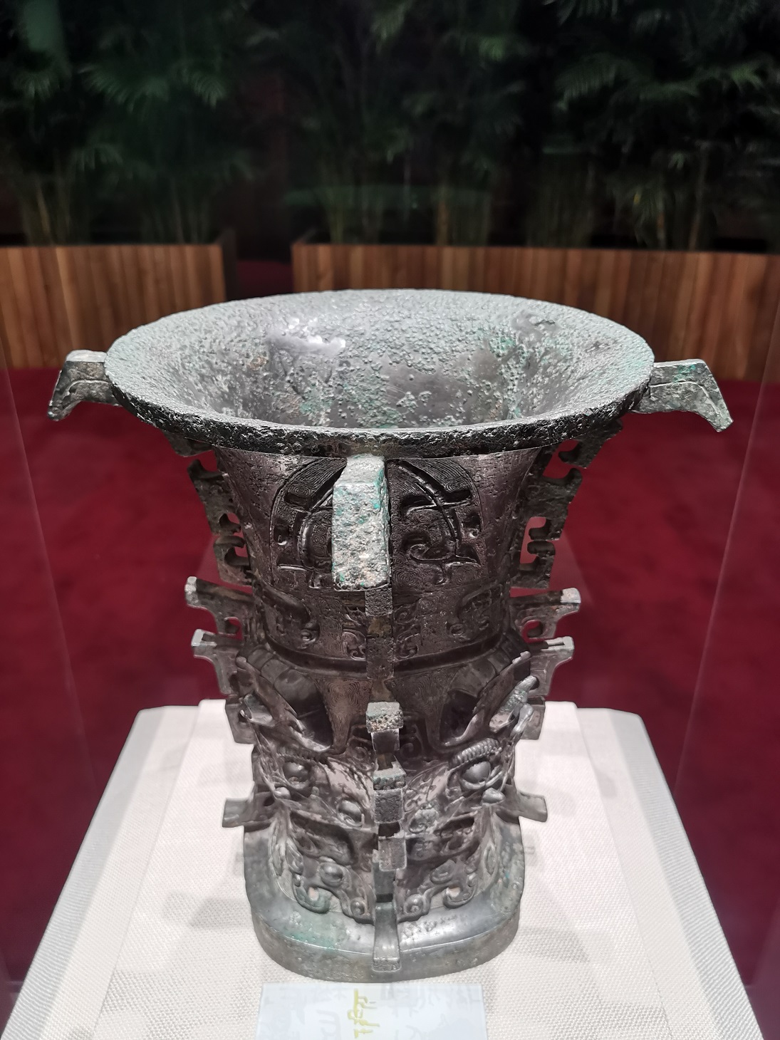 △青铜何尊(公元前1046—前771年,西周),1963年出土于中国陕西省宝鸡市东北郊贾村,现藏于宝鸡青铜器博物院。(央视记者李铮拍摄)
